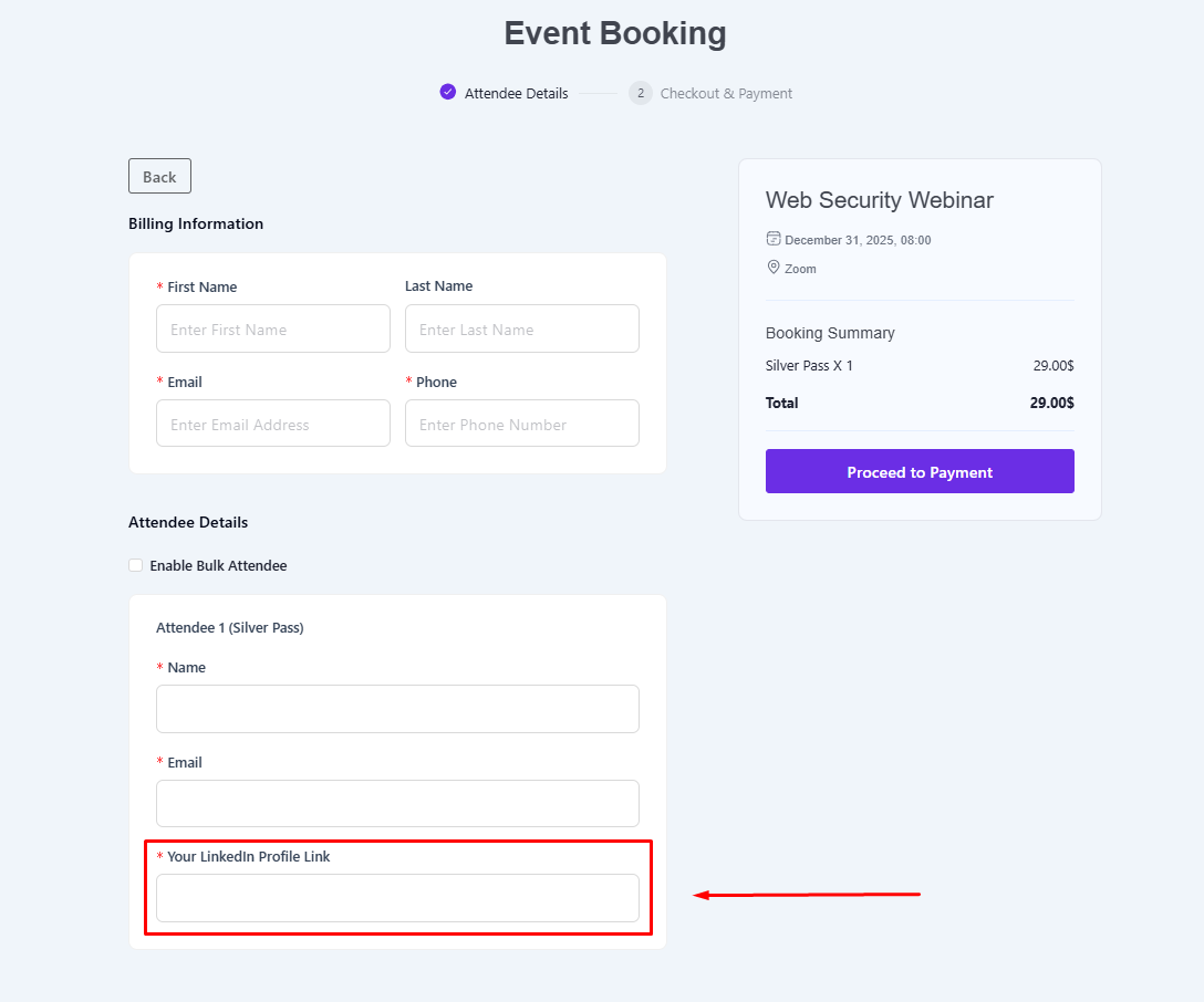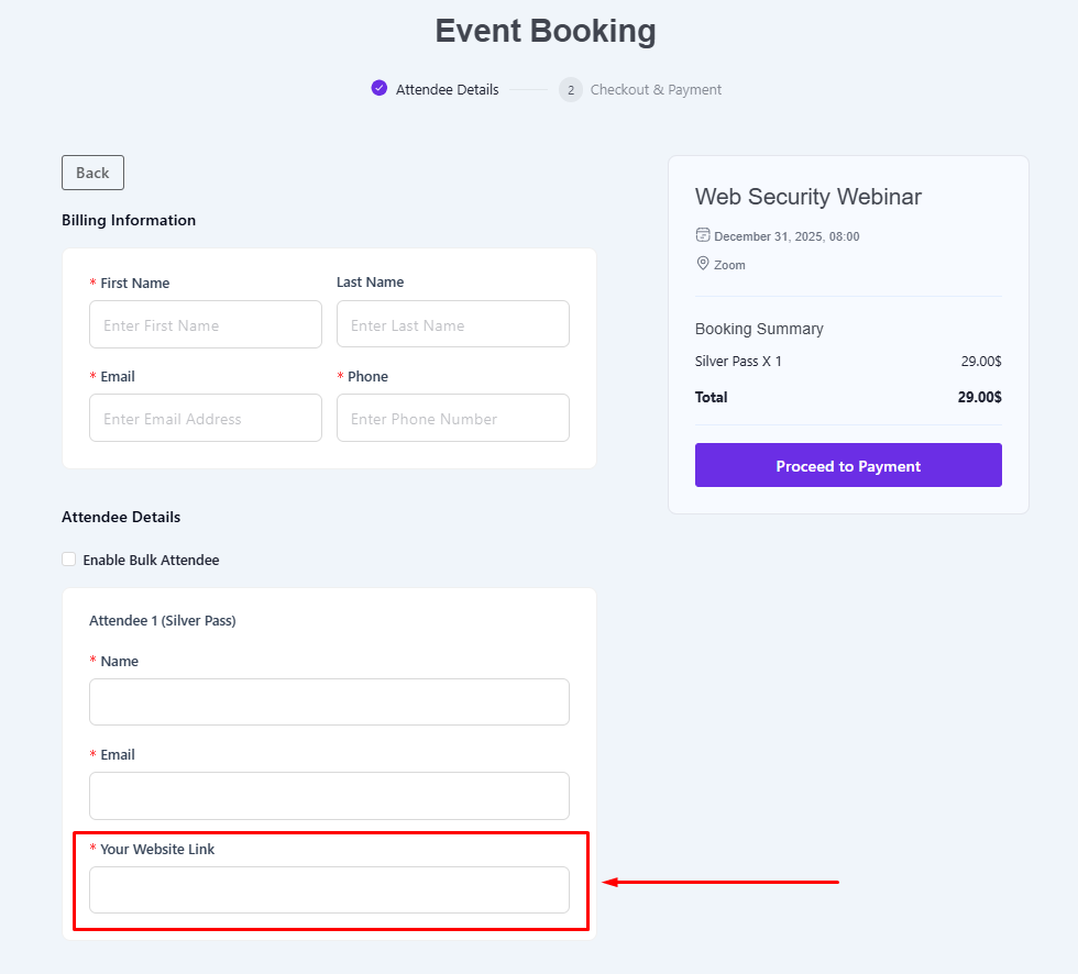 - Eventin Pro is required to use the Attendee Extra Fields feature.