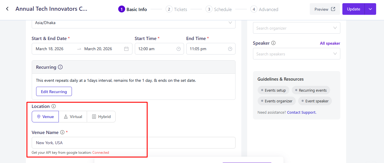 Note: If you want to use existing locations and Google Maps features, you need to use Eventin Pro version.