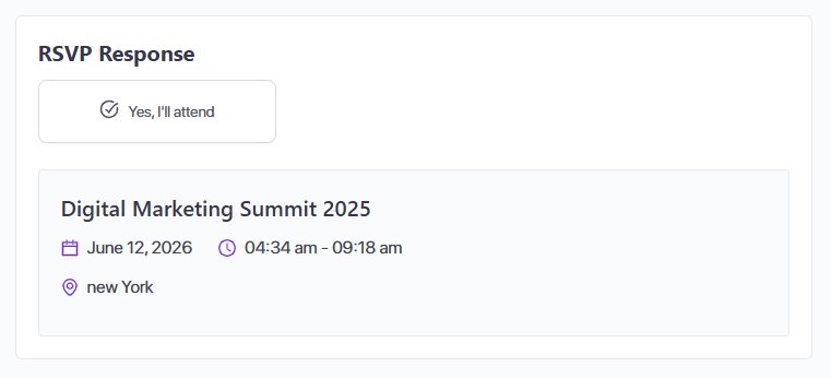 The RSVP feature in Eventin allows you to manage event attendance easily without requiring ticket sales. It’s perfect for free events, gatherings, meetups, or any scenario where you simply want to track who’s attending. With 3 response types, attendee limits, and visibility settings, RSVP events help you maintain an organized guest list and ensure smooth event planning.