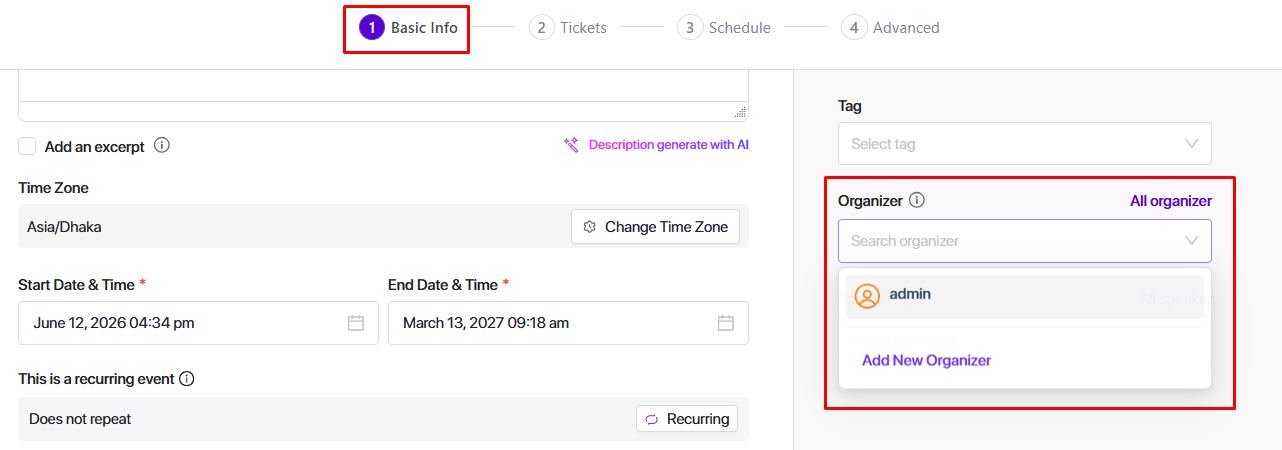 - Organizer Logo: Upload a logo image for the organizer, if applicable.