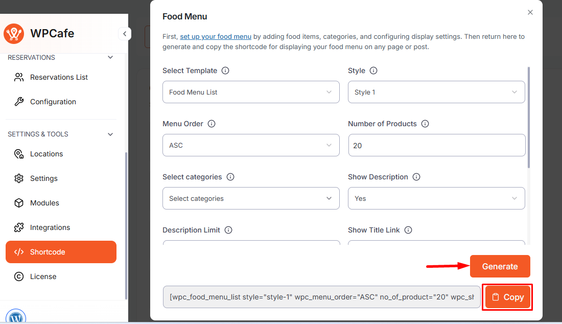 WPCafe provides a set of shortcodes to easily display your food ordering system on any page or post. Using these shortcodes, you can showcase your food menu, location filters, category lists, sliders, tabs, and more, making it simple for customers to browse and order food online. You can also add a reservation form using its shortcode to let customers book tables directly from any page or post.