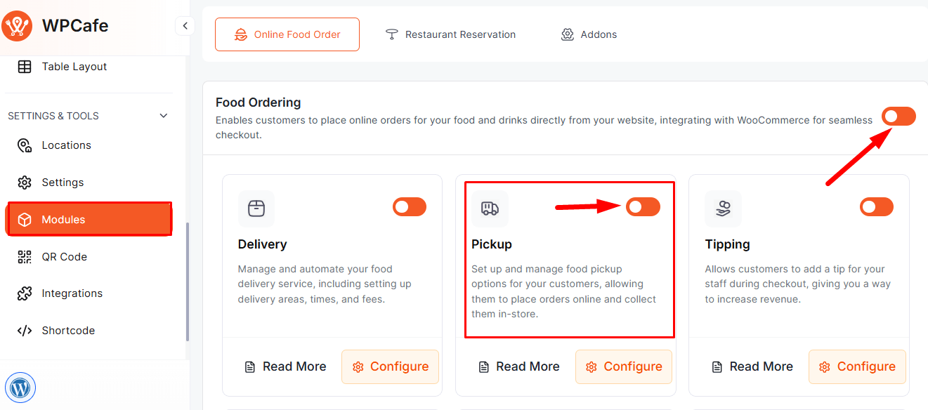 The Pickup feature in WPCafe allows customers to place orders online and collect them directly from your restaurant. It provides flexibility to manage global pickup schedules for all locations or custom schedules for individual branches, ensuring smooth operations and better customer experience. With configurable time slots, preparation times, and pickup instructions, you can streamline order management and make it easy for customers to choose convenient pickup times.