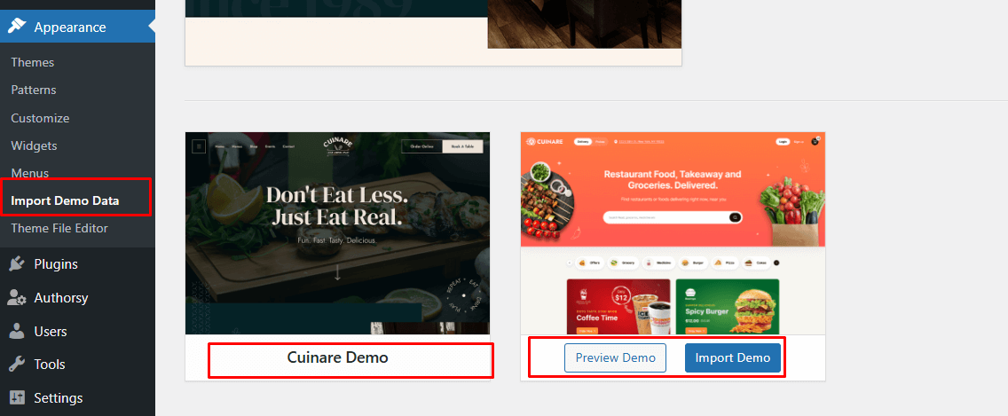 - Activate the updated Cuinare theme.