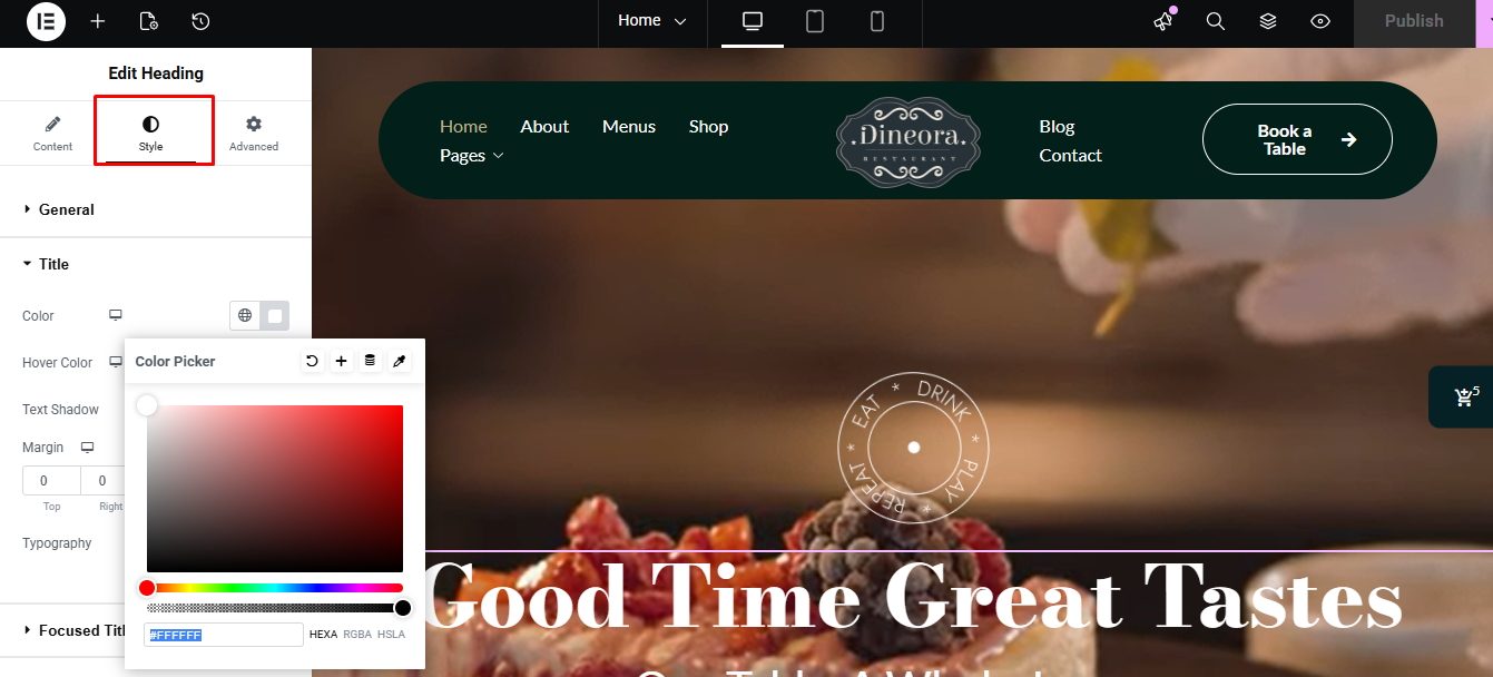 - Select the element and go to the Style tab in the left sidebar.