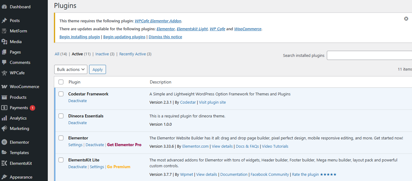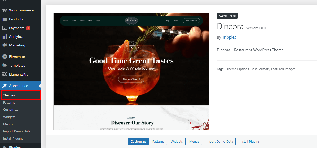 Note: Always activate the Dineora Child Theme instead of the parent theme to ensure your customizations are safe during updates. The child theme is included in your theme bundle. Install it following the standard theme installation process.